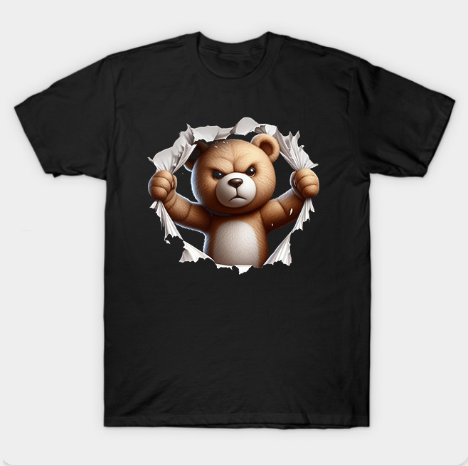 We use DTG Technology to print Angry Teddy Bear Black T-Shirt.