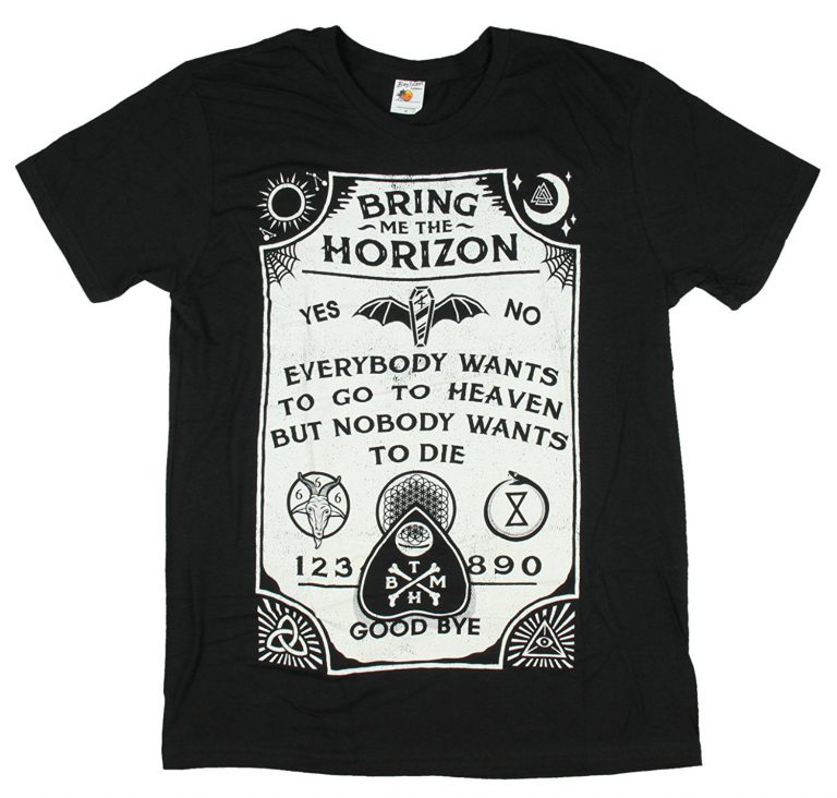 We use DTG Technology to print BMTH Everybody Wants To Go To Heaven But Nobody Wants To Die T-Shirt.