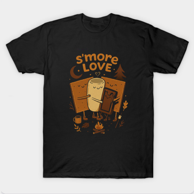 We use DTG Technology to print Campfire Cuddles T-Shirt.