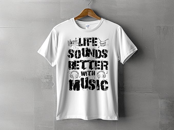 We use DTG Technology to print Life Sounds Better With Music T-Shirt.
