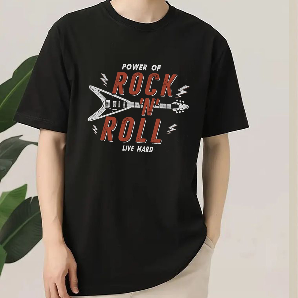 We use DTG Technology to print Power Of Rock n Roll Live Hard T Shirt.