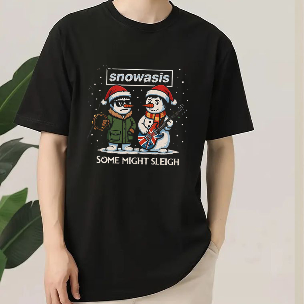 About SNOWASIS Some Might Sleigh Snowman Rock Band T Shirt from echostees.com